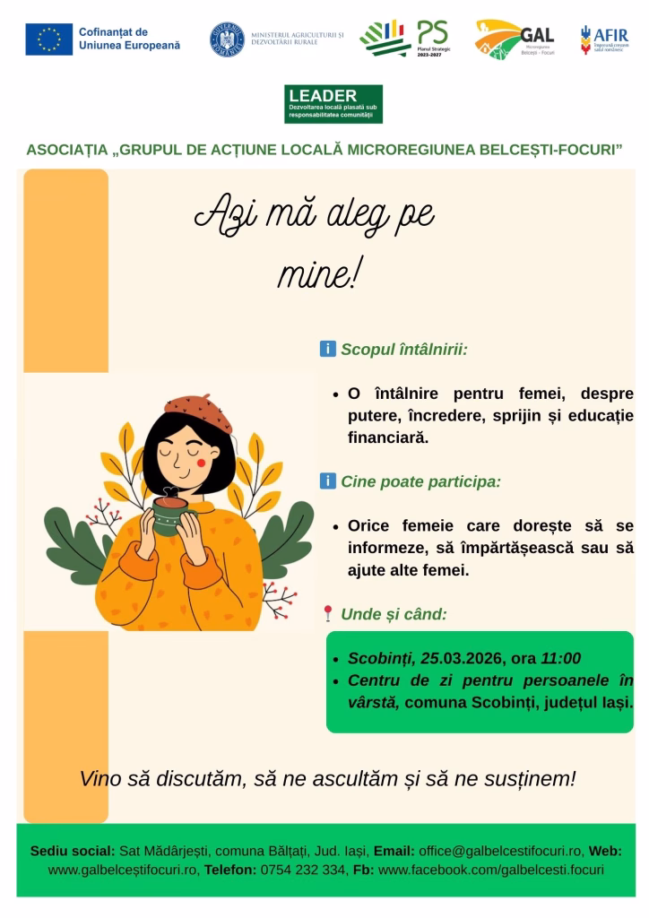 Asociația „Grupul de Acțiune Locală Microregiunea Belcești-Focuri”, invită doamnele și domnișoarele la întâlnirea ce va avea loc în