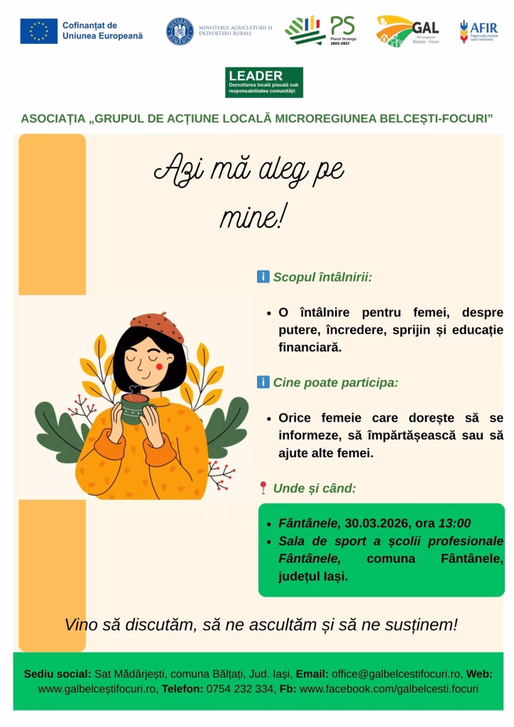 Asociația „Grupul de Acțiune Locală Microregiunea Belcești-Focuri”, invită doamnele și domnișoarele la întâlnirea ce va avea loc în